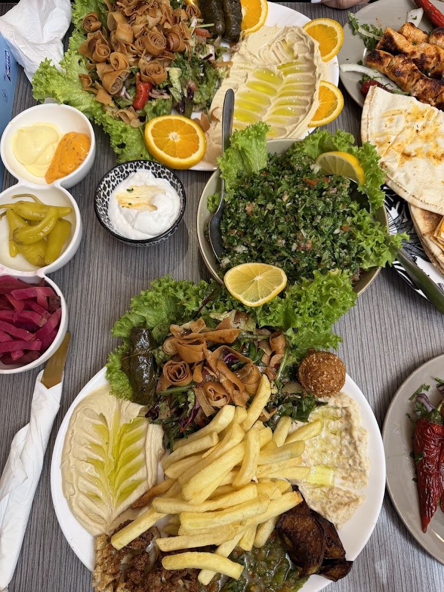 Really great Lebanese food with HUGE portions for the price. Everything is fresh, well seasoned and delicious. The service is amazing too, everyone is incredibly friendly and welcoming. It was the first Lebanese restaurant I tried in Brussels and it’s still one of the best I’ve had so far. I only wish they had a bit more space inside because I want to bring everyone here, they have quite a bit of seating but it does feel a little narrow. Still, absolutely worth it!